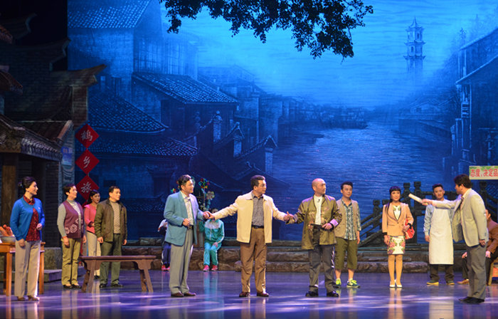 4月28日下午,大型現(xiàn)代淮劇《小鎮(zhèn)》在南京紫金大劇院演出,接受2014—2015年度江蘇省舞臺(tái)藝術(shù)精品工程終評(píng)驗(yàn)收。江蘇省文化廳廳長(zhǎng)徐耀新,鹽城市人民政府副市長(zhǎng)馬成志,鹽城市文廣新局局長(zhǎng)季德榮等一同觀看了演出。 今年初,省文化廳和財(cái)政廳啟動(dòng)2014—2015年度的省舞臺(tái)藝術(shù)精品工程終評(píng)工作,包括江蘇省淮劇團(tuán)的淮劇《小鎮(zhèn)》在內(nèi)的10部作品入圍,這次省舞臺(tái)藝術(shù)精品工程評(píng)審委員會(huì)專(zhuān)家進(jìn)行終評(píng)驗(yàn)收。 淮劇《小鎮(zhèn)》講述的是發(fā)生在一個(gè)以道德聞名的千年小鎮(zhèn)上的故事。一日,平靜的小鎮(zhèn)突然起了波瀾,一位京城的老企業(yè)家欲來(lái)小鎮(zhèn)尋找30年前的恩人,并將以500萬(wàn)作為酬謝,小鎮(zhèn)的代表人物朱文軒等以及鎮(zhèn)上的普通民眾紛紛幫助尋找。然而,這筆從天而降的巨款讓平靜的小鎮(zhèn)悄然發(fā)生了變化。它如同試金石,拷問(wèn)著小鎮(zhèn)的純潔和小鎮(zhèn)人的道德、良心。小鎮(zhèn)一度陷入混亂……爾后小鎮(zhèn)人又開(kāi)始了徹骨的自省。 在舞臺(tái)演出中,演員的精彩表演緊緊抓住了觀眾情緒,整場(chǎng)演出,觀眾席發(fā)出掌聲多達(dá)數(shù)十次,很多觀眾流下了感動(dòng)淚水。演出結(jié)束后,省文化廳廳長(zhǎng)徐耀新高度評(píng)價(jià)了這部戲。他說(shuō),《小鎮(zhèn)》這部戲主題好,立意新穎、教育意義深刻;故事好,大時(shí)代下的《小鎮(zhèn)》故事,良心拷問(wèn)彰顯厚德風(fēng)骨;表演好,演員通過(guò)語(yǔ)言、肢體、目光、神態(tài)等細(xì)節(jié)來(lái)表現(xiàn)人物內(nèi)心的掙扎,表演細(xì)膩傳神、動(dòng)人心弦,人物塑造個(gè)性分明。同時(shí)他還鼓勵(lì)劇團(tuán)多出作品、多出精品。